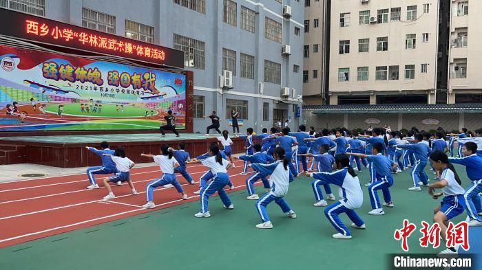 深圳市寶安區(qū)西鄉(xiāng)小學(xué)的學(xué)生們?cè)诰毩?xí)華林派武術(shù)操 西鄉(xiāng)小學(xué) 供圖