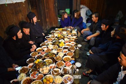 11月16日,新郎家派來的“關(guān)親客”在與新娘家的親戚喝酒對歌。