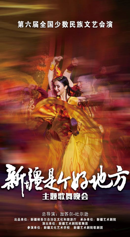 9月11日,由新疆維吾爾自治區(qū)文化和旅游廳策劃指導(dǎo),新疆藝術(shù)劇院統(tǒng)籌打造,新疆藝術(shù)劇院歌舞團(tuán)創(chuàng)作的主題歌舞晚會《新疆是個好地方》亮相第六屆全國少數(shù)民族文藝會演,在央視網(wǎng)和國家民委門戶網(wǎng)站進(jìn)行展播,向全國觀眾講述了多彩的新疆、團(tuán)結(jié)的新疆、大美的新疆。