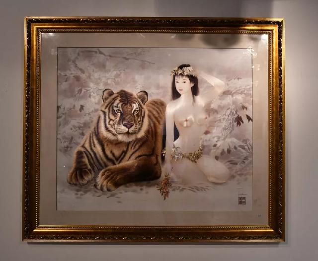 本幅繡品首次成功地將人物肖像圖方式引入傳統(tǒng)走獸刺繡之中。作者用細膩的針法細致精準地繡出了老虎根根可辨的絨毛和少女光滑細膩的皮膚,形成極大的反差,極具視覺沖擊力。