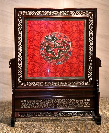 采用高檔的龍袍制作工藝,特大團龍妝花圓光嵌入云龍暗花地紋中,使整體更顯金碧輝煌,層次分明。該作品是中國國家博物館收藏的第一件當代云錦精品。