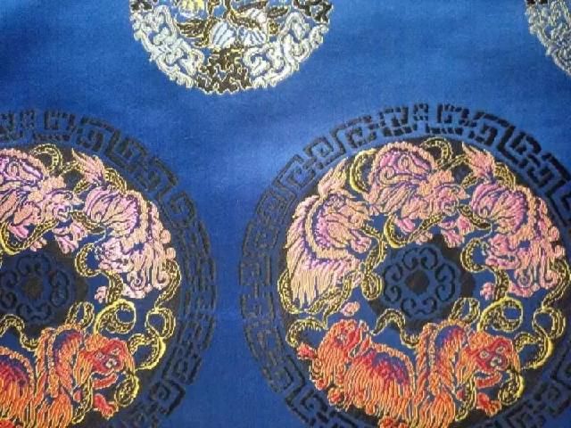 其次,它采用了雙經(jīng)軸織造,其中一組較為纖細的經(jīng)線(稱接結(jié)經(jīng)或面經(jīng)),用來接結(jié)正反面長浮的緯線,使織物花紋更為豐滿肥亮,質(zhì)地較經(jīng)錦和緯錦更輕薄,更適于日常的服飾和書畫的裝裱。