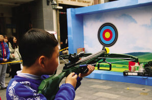 小朋友在少數民族體育花會上體驗射弩。(廣州市民宗局提供)