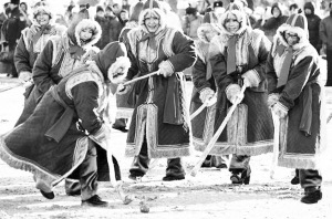 冰雪那達(dá)慕上,達(dá)斡爾人打起曲棍球