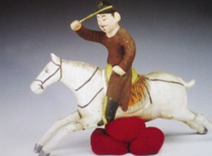 關(guān)于馬球運(yùn)動(dòng),現(xiàn)存文物中有不少形象記錄,比如保存于揚(yáng)州的打馬球紋銅鏡,以及新疆維吾爾自治區(qū)博物館收藏的彩繪泥塑打馬球俑。這兩件珍貴文物一個(gè)發(fā)現(xiàn)于經(jīng)濟(jì)文化都十分發(fā)達(dá)的揚(yáng)州,另一個(gè)出自絲綢之路上繁盛的吐魯番,都是盛唐時(shí)期的文化遺產(chǎn),讓我們感受到1000多年前馬球運(yùn)動(dòng)的魅力。