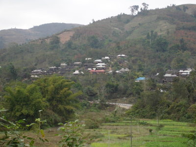 巴卡基諾族文化生態(tài)村是民族文化生態(tài)村建設(shè)項目五個試點村之一,所在的巴卡小寨,是位于云南省西雙版納州景洪市基諾山基諾族鄉(xiāng)與勐臘縣勐倫鎮(zhèn)接壤地帶的一個基諾族自然村寨,隸屬于景洪市基諾族鄉(xiāng)巴卡行政村。2006年2月27日,筆者從景洪市出發(fā)經(jīng)由勐臘縣睦倫鎮(zhèn)進入巴卡基諾族文化生態(tài)村進行為期三天的考察。在睦倫鎮(zhèn)搭乘摩的沿著213國道翻過山口前行約30分鐘就到達。進入村口巴卡小寨,村寨依山而建,位于公路上方約300米,房子緊挨房子排滿了半個山腰。據(jù)文獻資料顯示,巴卡小寨是1974年才由巴卡老寨遷出建立的新寨。筆者考察時,村子有62戶,270余人,居民中除了漢族2人,哈尼族2人,傣族、拉祜族各1人外,全部為基諾族。在213國道旁位于進入巴卡小寨的路口,立有三個牌子:一個是丁字形水泥標牌,用拼音和漢字書寫“巴卡小寨”,顯然是213國道原本設(shè)置的標牌;一個是黑底白字半圓木頭標牌,用漢英兩種文字寫著“巴卡基諾族文化生態(tài)村”、“美國福特基金會資助”,這是文化生態(tài)村建設(shè)產(chǎn)物;另一個是白色瓷磚鑲邊的正方形水泥標牌,用漢英兩種文字自上而下書寫“聯(lián)合國大學/全球環(huán)境基金”“云南農(nóng)業(yè)生物多樣性保護與可持續(xù)發(fā)展”“西雙版納實驗示范點”,項目實施單位是中國科學院西雙版納熱帶植物園和西雙版納國家級自然保護區(qū)管理局勐侖保護所,應該是文化生態(tài)村建設(shè)將巴卡小寨名聲提升之后獲得資源的見證。