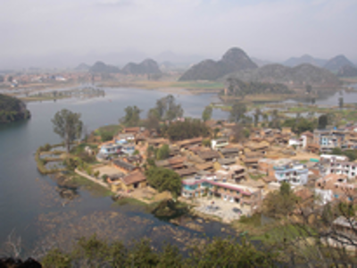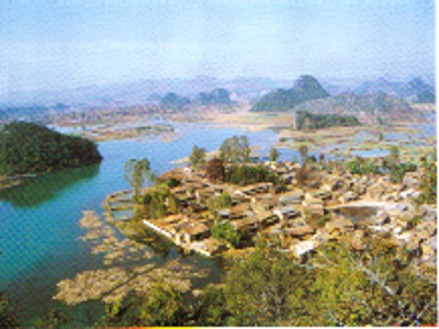 在一次學術(shù)會議上,筆者請教了首倡并主導“民族文化生態(tài)村”試點建設(shè)的尹紹亭教授,得知在他們首期的五個試點村落建設(shè)中,仙人洞村是比較成功的,于是在本項目的調(diào)查中,仙人洞村成為重點考察的對象之一?!跋扇硕匆妥逦幕鷳B(tài)村”位于云南丘北縣城西北16公里的普者黑湖畔?!捌照吆凇睘楫?shù)匾妥迦瞿嵴Z,意為“魚蝦多的湖潭”。普者黑實際是由眾多湖泊、河流構(gòu)成,總面積達165平方公里,已經(jīng)開發(fā)成由5個景區(qū)、56個景點組成的滇東南國家級著名旅游景區(qū)。