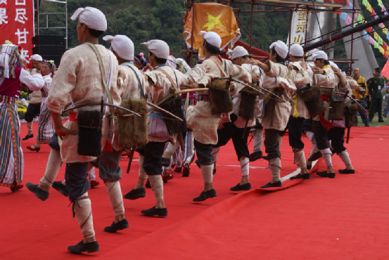 此外還有大量反映各種動(dòng)物習(xí)性的摹擬舞蹈,如“猴子打架舞”“斗羊舞”“斑鳩啄食漆籽舞”“烏鴉喝水舞”“母雞下蛋舞”“江邊陽雀舞”等等。
