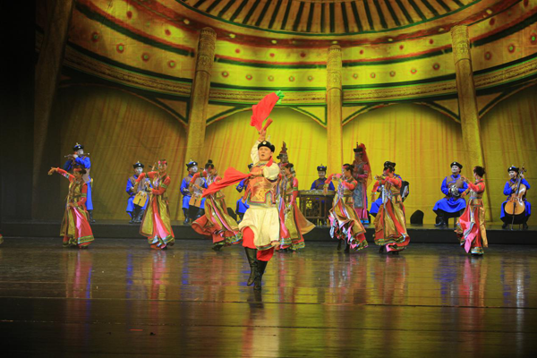 作為蒙古民族歌舞和民俗風(fēng)情最具代表性的經(jīng)典節(jié)目,《鄂爾多斯婚禮》已風(fēng)靡草原,享譽(yù)國(guó)內(nèi)外。那動(dòng)聽悠揚(yáng)的歌曲,優(yōu)美豪放的舞姿,華麗獨(dú)特的服飾,特別是那貫穿其中的鄂爾多斯蒙古族民間婚禮儀式,情節(jié)曲折,情思深幽,再現(xiàn)草原久遠(yuǎn)而優(yōu)美的傳統(tǒng),表現(xiàn)了鄂爾多斯蒙古族人民對(duì)生活的熾熱情感和豪爽善良的性格,反響熱烈,久演不衰。