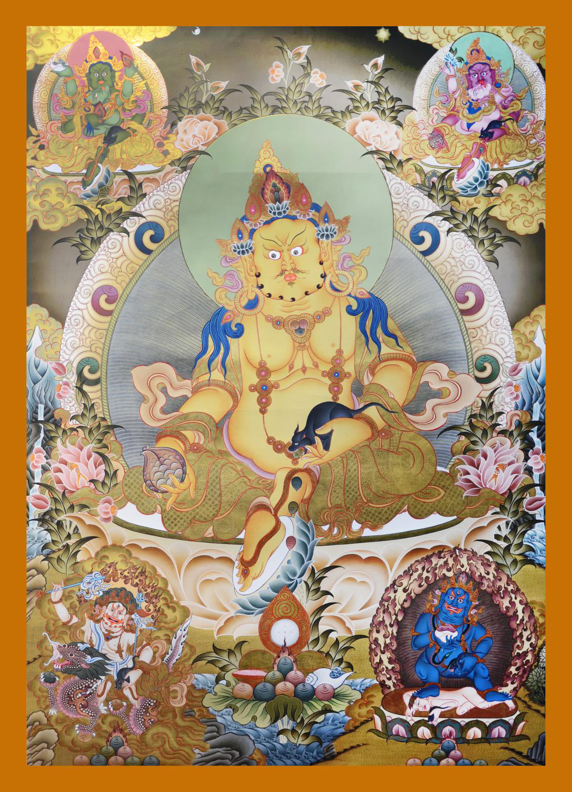 黃財(cái)神,藏名藏拉色波,是密教之護(hù)法神祗,諸財(cái)神之首。黃財(cái)神是藏傳佛教各大教派普遍供養(yǎng)的五姓財(cái)神之一,因其身相黃色,故稱為黃財(cái)神。