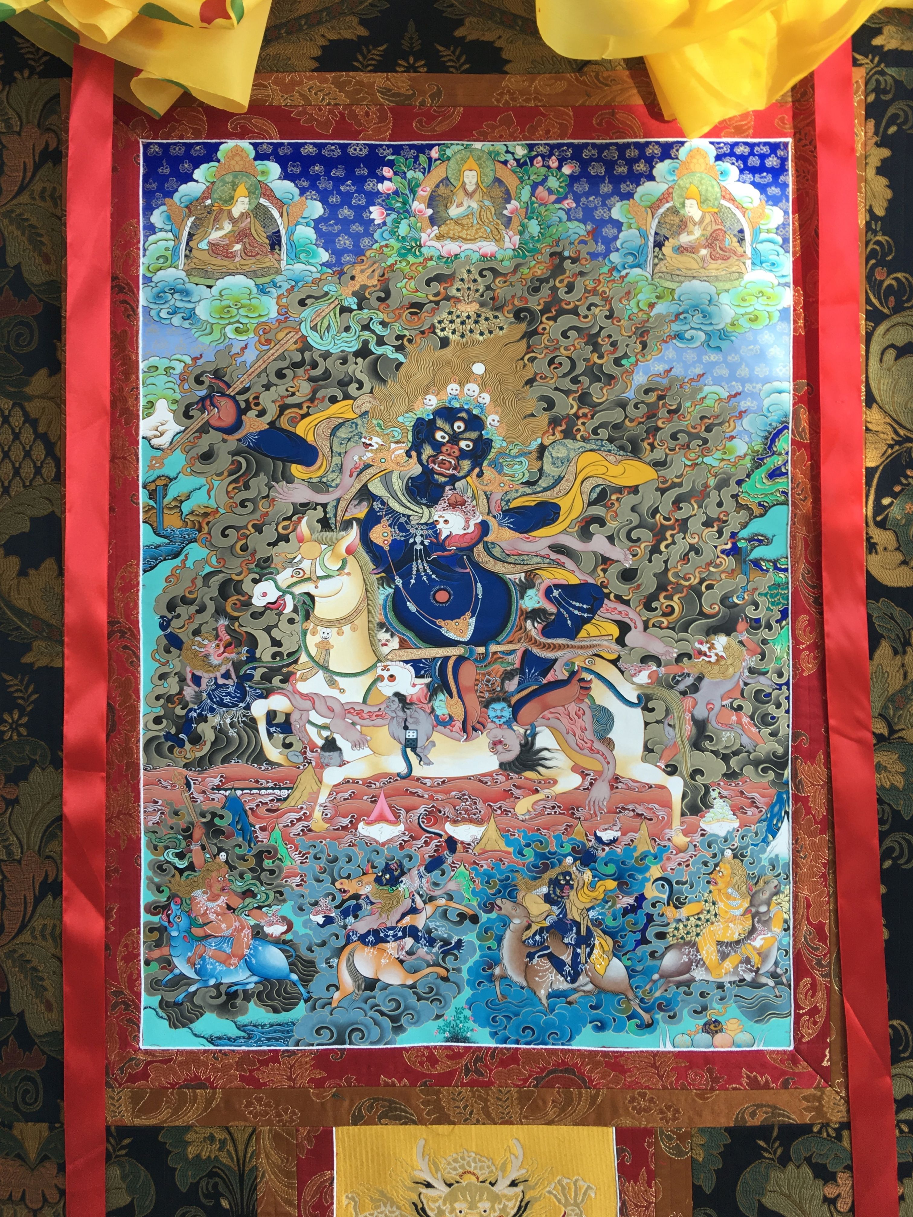 吉祥天母又稱吉祥天女,梵文 Lak?mī,音譯“拉娔詩米”,藏語稱“班達(dá)拉姆”,是藏密中一個重要女性護法神。她是古印度神話中的人物,傳說是天神和仇敵阿修羅攪動乳海時誕生的。后來婆羅門教和印度教把她塑造成女神,為她取名“功德天女”(又稱吉祥天女),說她是毗濕奴的妃子,財神毗沙門之妹,主司命運和財富。后來她成了佛教的重要護法神。