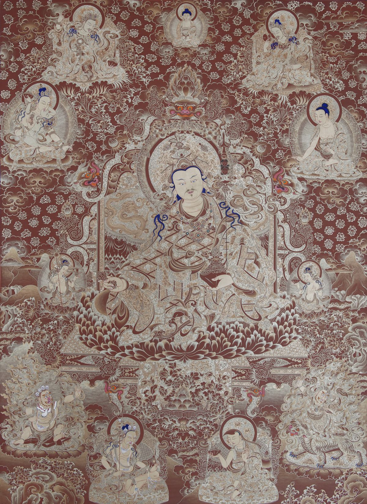 蓮花生大師,印度佛教史上最偉大的大成就者之一。公元八世紀(jì),應(yīng)藏王赤松德贊迎請(qǐng)入藏弘法,成功創(chuàng)立了西藏第一座佛、法、僧三寶齊全的佛教寺院——桑耶寺。他教導(dǎo)藏族弟子學(xué)習(xí)譯經(jīng),從印度迎請(qǐng)無垢友等大德入藏,將重要顯密經(jīng)論譯成藏文,創(chuàng)建顯密經(jīng)院及密宗道場(chǎng),開創(chuàng)了在家出家的兩種圣者應(yīng)供軌范,如是等等,奠定了西藏佛教的基礎(chǔ)。[藏傳佛教尊稱他為咕如仁波切(意為大寶上師)、鄔金仁波切(烏仗那寶)。通稱貝瑪迥乃(蓮花生)。據(jù)多羅那他于1610年所著《蓮花生傳》所載,約于摩揭陀國天護(hù)王時(shí)出生于鄔金國王族。圣誕日:藏歷六月初十。