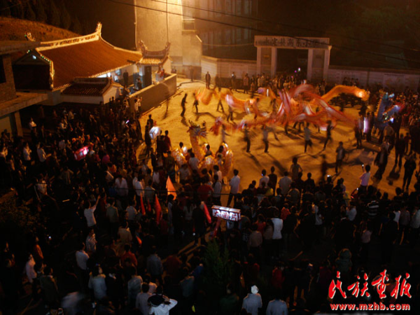 鑼鼓喧天,鞭炮齊鳴。每年的正月十三至正月十五,承啟樓所在的高頭鄉(xiāng)都要舉行隆重的民間舞龍活動(dòng),祈求新一年風(fēng)調(diào)雨順、平安吉祥,比春節(jié)還要熱鬧。由于舞龍都是年輕人來(lái)參加,元宵節(jié)舞龍又可以稱做年輕人的盛會(huì)。
