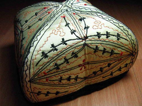 簡介:新疆兄弟民族的帽子,顏色、帽形是多種 多樣的,最典型的是維吾爾人的綠花帽。它是用手工、絲線繡上花葉圖案的四方棱形的花帽,繡工精致,花葉紋樣富有裝飾美[詳細]