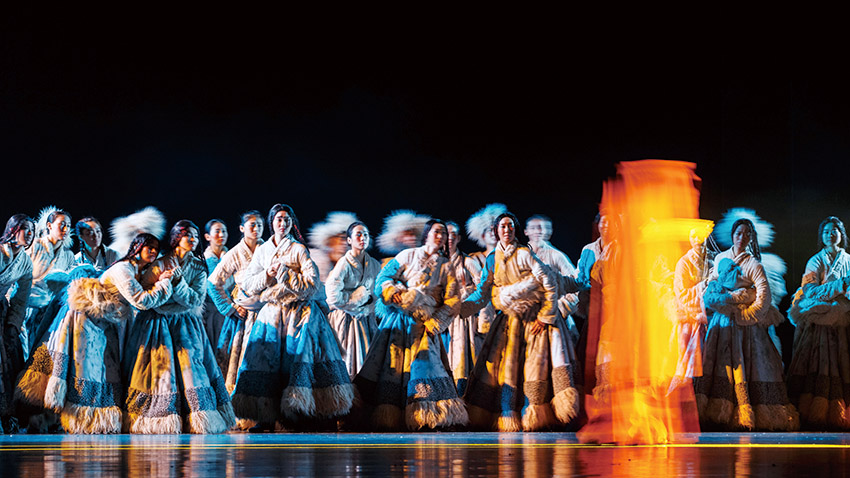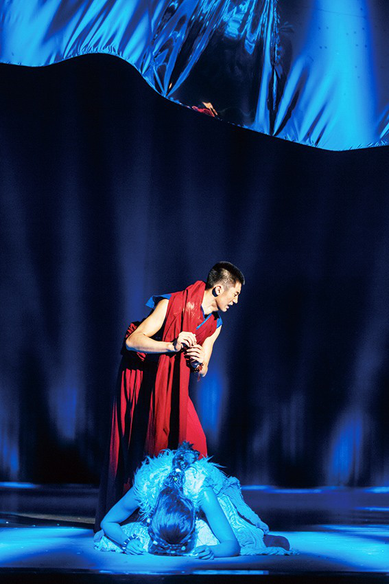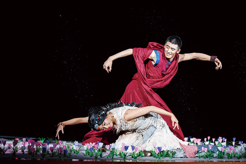 為何我們會記住倉央嘉措?無論你是否到過西藏,你看了這部舞劇后最終都會明白,因為他是一位動人心魄的情僧。他的情詩,亦是情花,遍灑在這片土地上,令繁花盛開,情緣流長。我們難以忘懷的不是這位達(dá)賴?yán)飩髌娴纳矸荩撬麑亦l(xiāng)深深的眷念,對情愛的難以割舍。歲月無情亦有情,它做了時間的信差,傳遞了300年前的故事。面對情感,無論多么堅強(qiáng)的心都會變得柔軟。所以每一個讀過倉央嘉措詩歌的人,都會陷入那濤濤的情海里難以自拔。