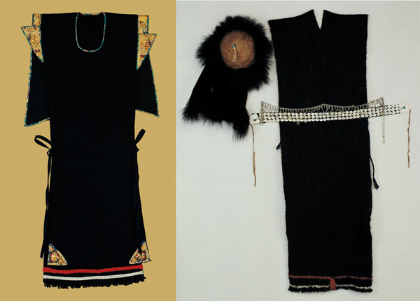 珞巴族的民族服飾已列入國家級非物質(zhì)文化遺產(chǎn)名錄。圖為珞巴族民國時(shí)期貫頭式氌氌女服與男服,中央民族大學(xué)民族博物館館藏。