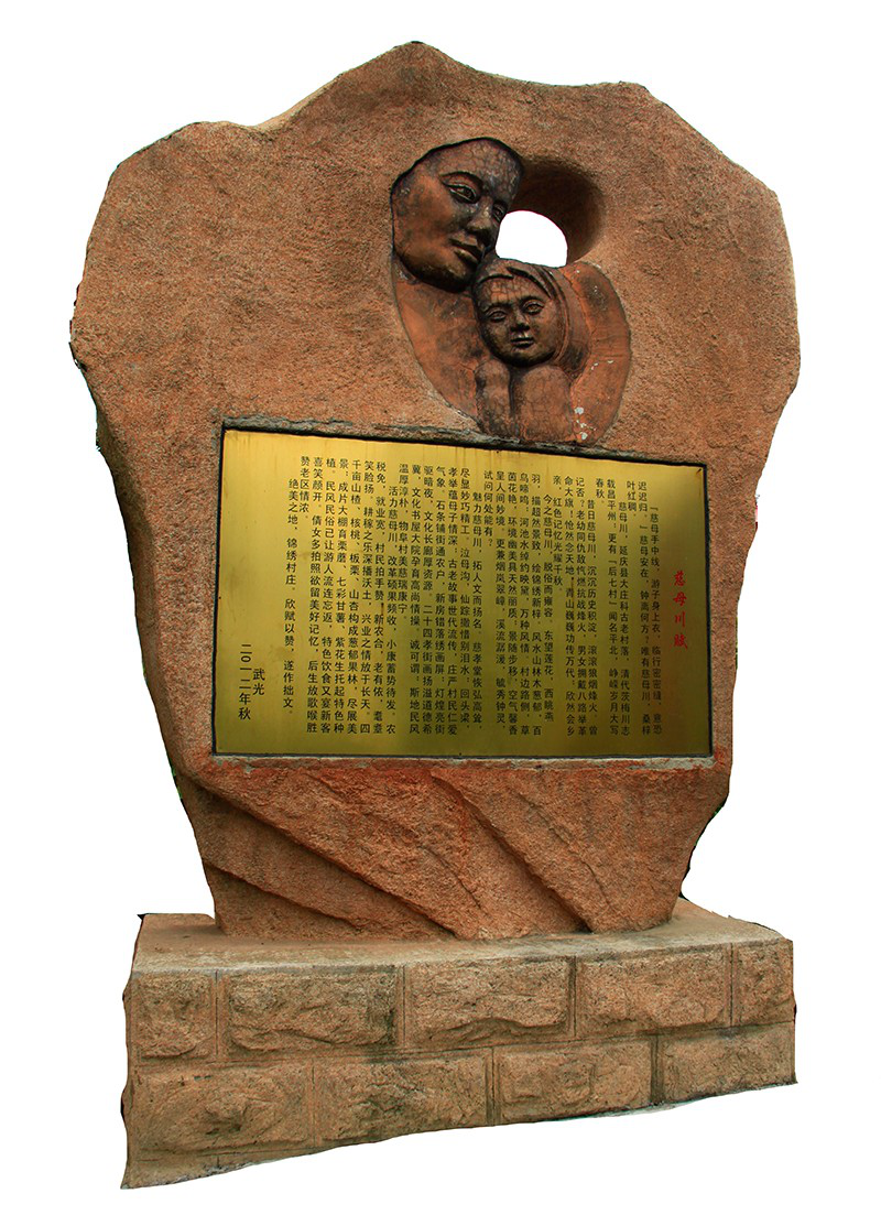 從花藤環(huán)繞的村門進(jìn)入村子,一座巨石浮雕映入眼簾,上刻慈母孝子,下刻慈母川賦。沿新修的主干道前行,左側(cè)民居古樸,錯落有致,庭院優(yōu)雅,賞心悅目;右側(cè)河水清澈,錦鯉暢游,小橋流水,山影斜疏。新建的村民文化廣場,與對面的滿族風(fēng)情展示墻、健身廣場隔路相望。路邊高大的垂楊柳上懸掛著長長的秋千,悠閑的老人正坐在上面曬太陽。