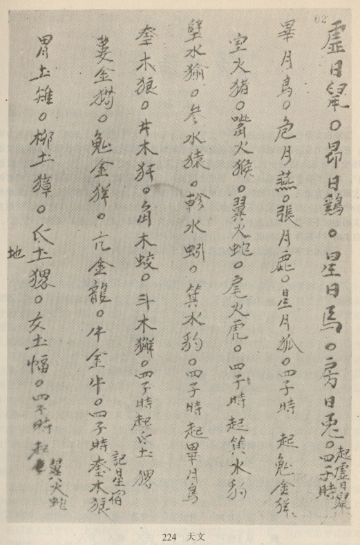 水書天文書抄本。寫于民國(guó)年間。書于白皮紙上,從右至左直寫,高36厘米,寬26厘米,共39頁(yè)。圖中為星象名稱。皆借漢字諧音,由此可窺察水族文字的發(fā)展?fàn)顩r。原件存北京圖書館。