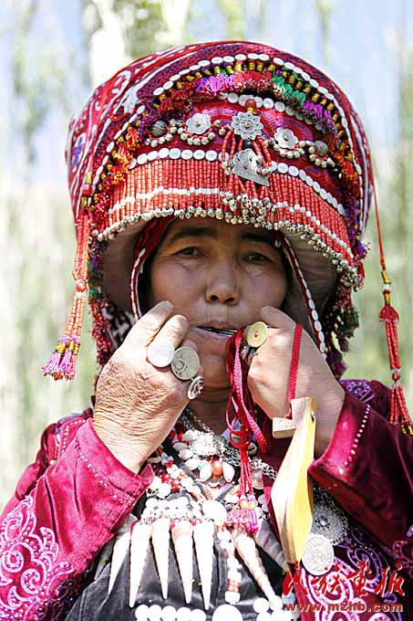 “奧孜庫(kù)姆孜”是同時(shí)用嘴吹和用手指彈奏的樂(lè)器,琴上只有一個(gè)小小的鋼片用來(lái)彈奏。這種樂(lè)器只有柳葉大小。演奏時(shí),琴頭放入嘴里,抵于門齒之間,用食指彈奏鋼片,并同時(shí)在口腔內(nèi)呼吸運(yùn)氣進(jìn)行吹奏。在彈奏和呼吸之間奏出婉轉(zhuǎn)美妙的樂(lè)曲,因此被稱為柯?tīng)柨俗巫宓摹懊烂钪凇薄?/p>