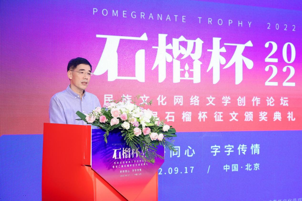 2022年9月17日,民族文化網(wǎng)絡(luò)文學(xué)創(chuàng)作論壇暨第二屆石榴杯征文頒獎(jiǎng)活動(dòng)在民族文化宮舉行。本次活動(dòng)得到了國(guó)家民委所屬中國(guó)少數(shù)民族文化藝術(shù)促進(jìn)會(huì)和中國(guó)紀(jì)實(shí)文學(xué)研究會(huì)的指導(dǎo)與支持,由閱文集團(tuán)、北京天成嘉華文化傳媒主辦,天成達(dá)星國(guó)際傳媒承辦。