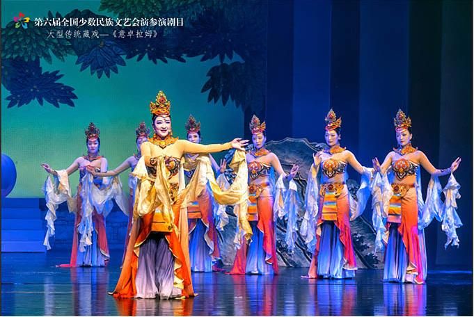 9月14日,作為第六屆全國少數(shù)民族文藝會演參演劇目,由青海省選送、青海省藏劇團(黃南藏族自治州民族歌舞劇團)創(chuàng)作演出的藏戲《意卓拉姆》在央視網(wǎng)和國家民委門戶網(wǎng)站進(jìn)行演播。該劇講述了傳說中的仙女意卓拉姆與人間的諾桑王子相愛,歷經(jīng)挫折與磨難后終成眷屬的愛情故事,表現(xiàn)出意卓拉姆對愛情的忠貞不渝和諾桑王子堅韌不拔的意志。