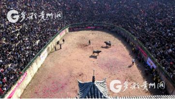 貴州省從江縣第十五屆原生態(tài)侗族大歌節(jié)的前一天,恰逢該縣逢亥斗牛日,丙妹鎮(zhèn)松學(xué)斗牛塘、谷坪鄉(xiāng)四寨河斗牛塘同時(shí)舉辦傳統(tǒng)牛王爭(zhēng)霸賽,喜迎一年一度“侗族大歌節(jié)”的到來,共有來自周邊村寨的80頭水牯牛參戰(zhàn),斗?;顒?dòng)場(chǎng)上名牛角逐,場(chǎng)面異彩紛呈,吸引數(shù)萬名觀眾前來觀戰(zhàn)。