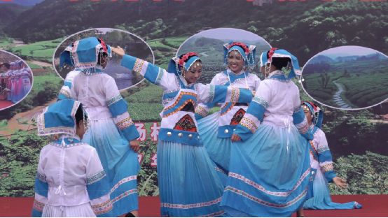 祭祀完成后,當?shù)氐哪信仙俅┲约旱拿褡宸?,興高采烈地為客人表演極具民族特色的歌舞。連周邊的苗族同胞也來為布依族節(jié)日慶賀,登臺表演共敘友誼。一些村民們自發(fā)性地登臺參與演出,雖然質(zhì)樸卻不失誠意。