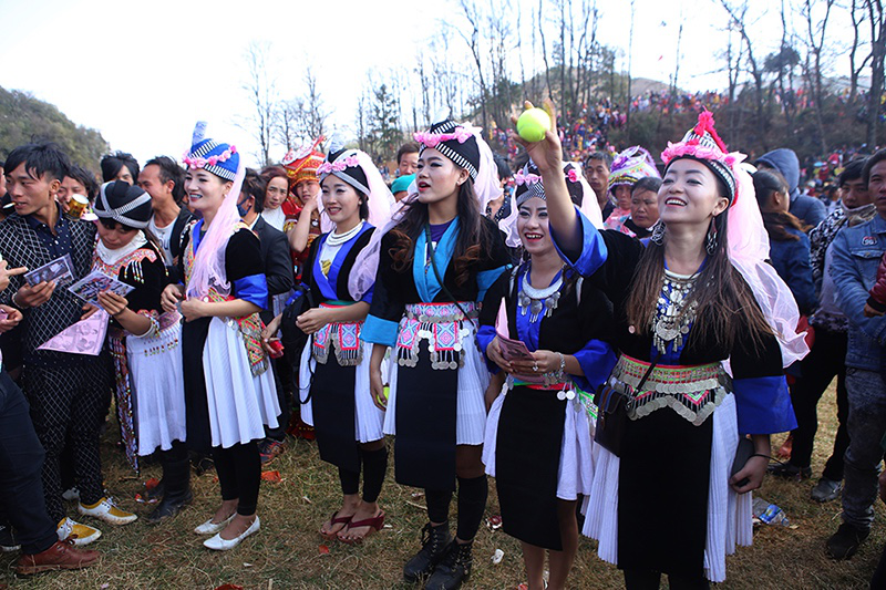 由于在歷史上經(jīng)歷長(zhǎng)時(shí)間、大范圍的遷徙,苗族文化形成了較強(qiáng)的環(huán)境適應(yīng)能力和流動(dòng)變遷特征。節(jié)日作為民族文化的凝集點(diǎn),慶祝方式和形態(tài)也處于動(dòng)態(tài)的演變和傳承之中。在大布紅的花山場(chǎng),一個(gè)從老撾過來的苗族女子樂隊(duì)讓當(dāng)?shù)氐拿缱迦烁械胶闷妗f著同樣的西部苗語,卻穿著略顯不同的衣服。她們排成一行,教人們一來一往地扔繡包,一時(shí)間圍觀者無數(shù)。不消多久,女子樂隊(duì)手中的CD就在人群中銷售一空。