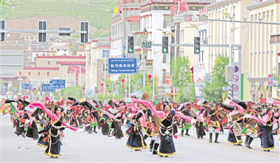 2017年7月24日下午,一場名為“瀟灑的康巴人”玉樹風(fēng)情巡游在玉樹藏族自治州州府玉樹市街頭上演。來自玉樹州一市五縣的康巴藏族兒女或馭駿馬、或盛裝、或歌舞,以行走巡游的方式展示當(dāng)?shù)鬲毦咛厣拿褡迕袼孜幕?。各縣巡游隊伍從感恩廣場出發(fā),途徑結(jié)古大道、民主路,最終到達(dá)玉樹軍分區(qū),沿途圍滿了觀看的群眾和游客,據(jù)悉,此次巡演在玉樹州尚屬首次。