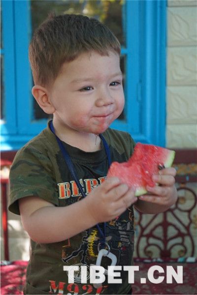 “馕是當(dāng)?shù)厝穗x不開的食物,包括這里的漢族群眾,現(xiàn)在都已經(jīng)習(xí)慣了這樣的飲食。我曾見過當(dāng)?shù)匾恍h族朋友到內(nèi)地一趟,回來后第一件事就是吃拌面、烤肉,喝奶茶,我們多個(gè)民族的人長期居住在這里,生活早已交融在一起了?!碑?dāng)?shù)鼐用窈Aβ?阿吾提對記者說。圖為當(dāng)?shù)靥厣朗场?/p>