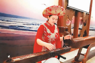 在京族文化傳承與保護(hù)中心,記者遇到63歲的獨(dú)弦琴藝術(shù)家蘇春發(fā)和32歲的講解員趙霞?!拔?歲跟叔叔學(xué)獨(dú)弦琴,11歲拜姑丈為師,1991年以來(lái),我親手教出來(lái)的學(xué)生已有300多人?!苯衲?月,蘇春發(fā)獲得國(guó)家文旅部頒發(fā)的“京族獨(dú)弦琴藝術(shù)代表性傳承人”證書。京族姑娘趙霞曾參加“京族哈妹組合”,進(jìn)入第十四屆CCTV青歌賽原生態(tài)組全國(guó)決賽,并榮獲團(tuán)體優(yōu)秀獎(jiǎng)。她左手搖柱,右手撥弦,當(dāng)場(chǎng)為我們演奏一曲悠揚(yáng)、委婉的京族民歌《過(guò)橋風(fēng)吹》,把京族少男少女的情動(dòng)心境演繹得非常唯美。