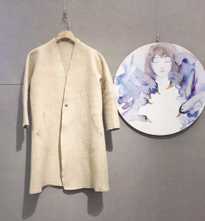 哈薩克族羊絨氈衣 秦娜兒·努爾蘭(參展人): 哈薩克人從搖籃到墳墓都離不開氈子。我是在奶奶做的花氈上邁出人生第一步的。奶奶去世的時候,為了紀念她,我做了這件衣服。這是一件可以穿一輩子的、能承載得起一段記憶的衣服。如果奶奶在世,看到這件衣服也會贊嘆吧!