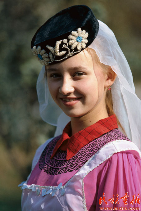 哈薩克族服飾中裙子、帽邊、頭巾、花邊大多使用白色