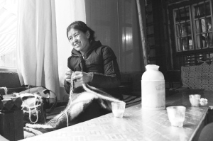 “一壺甜茶一下午。”勤勞的藏族婦女,手里的鉤針穿梭在毛線之間,一下午就織好了一個馬鞍坐片。