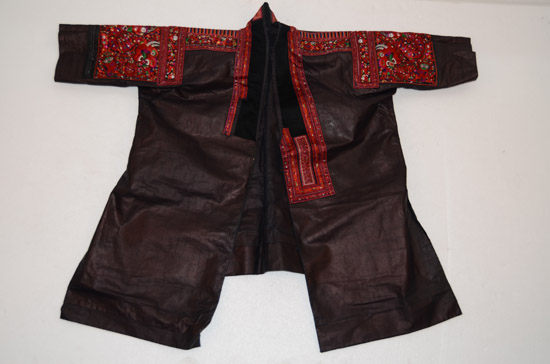 分布在臺江、施秉、鎮(zhèn)遠(yuǎn)三縣交界地一帶苗族村寨,以臺江施洞苗族為代表。該服裝上衣為家織布右衽衣,刺繡主要在前襟、衣領(lǐng)、肩袖部分,以黔東南苗族特有的破線繡為主,所繡圖案主要為龍紋,工藝精美,具有民族特點。