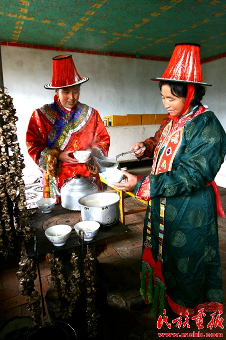 酥油奶茶是裕固族招待貴客的飲料,它們能夠幫助遠(yuǎn)道而來(lái)的客人抵御風(fēng)寒
