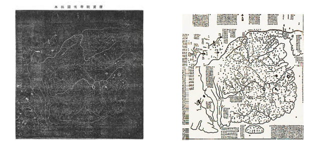 唐代地理學(xué)家賈耽采用裴秀制圖法組織畫工繪制《海內(nèi)華夷圖》,幅面約十平方丈,古今對照,雙色繪畫,注重少數(shù)民族部分,是巨幅唐代中國全圖?!哆M(jìn)海內(nèi)華夷圖及古今郡國縣道四夷述表》云:“唐臣聞地以博厚載物,萬國棋布;海以委輸環(huán)外,百蠻繡錯(cuò)。中夏則五服九州,殊俗則七戎六狄,普天之下,莫非王臣。” 宋代《華夷圖》被簡化成縱橫各約80厘米,刻于《禹跡圖》背面;圖上不畫方格,有山脈、河流、長城和各州的名稱,其位置大體與實(shí)際相近。山脈用人字形表示,河流為單曲線;河流名稱注記在河源處,囊括眾多異族名稱。西安碑林博物館這塊作為印刷用的兩面刻有地圖的石版,是中國現(xiàn)存最早的石版地圖。唐代巨幅彩繪《海內(nèi)華夷圖》和宋代石刻《華夷圖》不僅標(biāo)志著中世紀(jì)中國制圖學(xué)上最高成就,而且是中國多民族國家的象征。