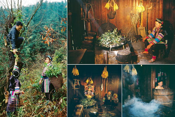 各地藥浴習(xí)俗不同,或每日洗浴,或擇吉日洗浴。由每戶最年長(zhǎng)的男性上山采來(lái)追風(fēng)藤、半邊楓、九龍盤、血藤等中草藥,洗凈,捆成把或切碎放入大鐵鍋中用水煮沸,待煮出藥汁后,撈去藥渣,把煮好的藥水放入專門藥浴的大桶——“龐桶”中。浴者赤身入桶,在保持適宜溫度(一般為38度左右)的藥液中浸泡20-30分鐘。鍋中有煮好的備用藥水,可保證每位藥浴者浴時(shí)的溫度相同。在藥浴中,通過(guò)浸泡,讓藥汁慢慢地滲入人體的毛細(xì)血管、遍及全身,達(dá)到以浴治病的目的?,幾逵盟幩瓷恚环帜信嫌?,全家皆洗,一家人輪流洗,水臟了就換,冷了再加熱?,幾鍖鹘y(tǒng)禮儀規(guī)范滲透到藥浴治療當(dāng)中,規(guī)矩是:先客后主,先小后大,先老后少,先男后女。