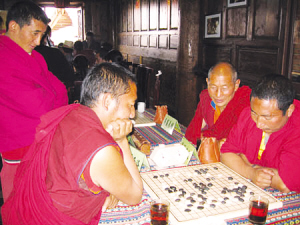 現(xiàn)在,藏棋仍為很多藏族人所喜愛。在藏棋傳承較好的四川省阿壩縣,大人小孩都能下大約3個種類的藏棋。該縣還成立了藏棋協(xié)會,迄今已舉辦了13次藏棋比賽。在西藏,去年西藏大學試點進行藏棋教學,拉薩的小學也開始進行密芒、久、國王和大臣等3個種類的藏棋教學。在云南,也開設(shè)了藏棋棋院,培養(yǎng)優(yōu)秀選手。