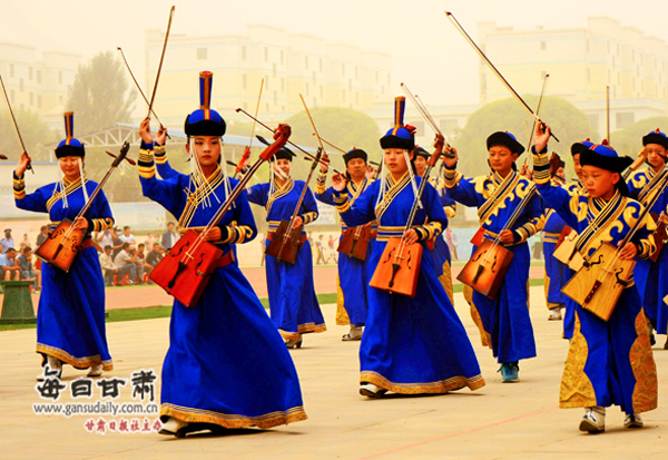 2017年9月至10月,在肅北首屆“絲綢之路那達慕”文化旅游節(jié)開幕式以及“喜迎黨的十九大 同心筑夢向未來”肅北國慶專場演出中,肅北縣烏蘭牧騎推出了全新舞蹈《雪山歡歌》及馬頭琴齊奏《雪山琴韻》等,充分表達了雪山蒙古人的一片豪情與向往。