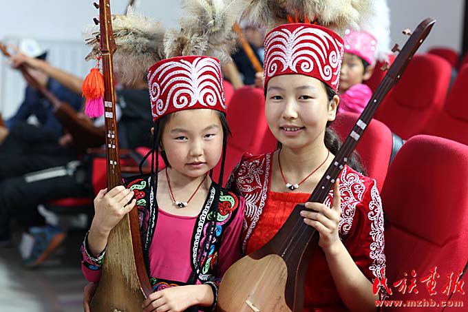 學(xué)彈庫(kù)姆孜的柯爾克孜族兩姐妹