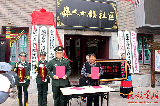 彝人古鎮(zhèn)社區(qū)與駐楚某部隊(duì)結(jié)成了軍民共促民族團(tuán)結(jié)進(jìn)步示范單位