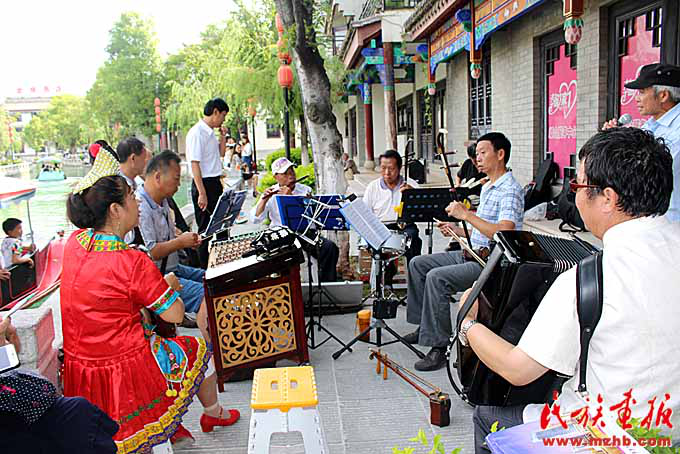 民樂隊(duì)是古鎮(zhèn)清明河畔一道靚麗的風(fēng)景