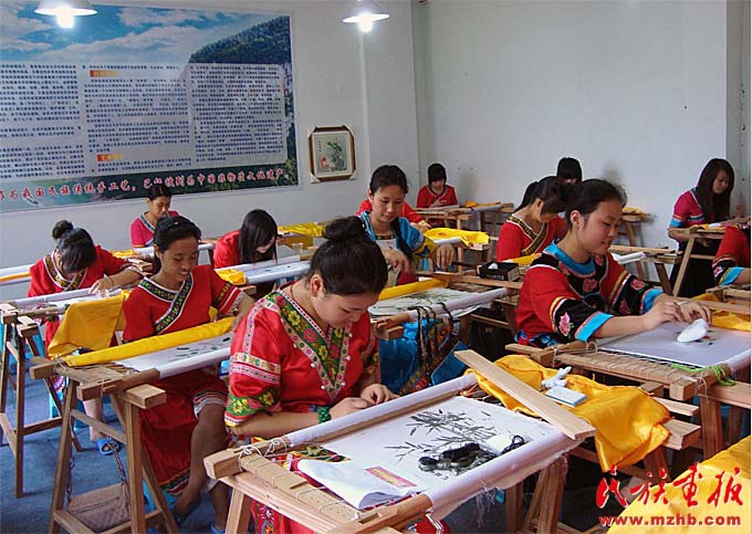 2015年,李紹玉榮獲年度“全國優(yōu)秀農(nóng)民工”。2016年,李紹玉成為重慶非物質(zhì)文化遺產(chǎn)——彭水苗繡的代表性傳承人。從一個打工女,到回家鄉(xiāng)帶動村民致富,再到成為全國人大代表,她說自己深感榮幸和責(zé)任重大?!翱偫韴蟾胬飳iT提到‘加強(qiáng)文物保護(hù)利用和文化遺產(chǎn)保護(hù)傳承’,我自己的成長,就得益于此。苗繡是苗族人民古老而美麗的技藝,我們有責(zé)任把它世代傳承下去。我們也要在苗族文化與手工藝術(shù)品融合上下功夫,使傳統(tǒng)工藝與市場結(jié)合、傳統(tǒng)元素與現(xiàn)代時尚相結(jié)合?!?/p>