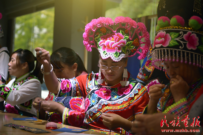 不忘初心,方能遠(yuǎn)行。在上下求索創(chuàng)意民族服飾的同時(shí),盧潔瑩不忘致力于彝族傳統(tǒng)文化的發(fā)揚(yáng)與傳播。2016年起,索玉文化美學(xué)創(chuàng)意有限公司與楚雄市婦聯(lián)、彝繡協(xié)會(huì)共同主辦的,旨在幫助楚雄山區(qū)彝族婦女用傳統(tǒng)手工技藝精準(zhǔn)扶貧的培訓(xùn)項(xiàng)目“彝繡之夢(mèng)”已開展了兩年?!皠?chuàng)業(yè)不易,要致富也要帶動(dòng)各族同胞一起致富?!北R潔瑩說,“我們的培訓(xùn)班每年都開辦,就是要幫助繡女們走出大山,走進(jìn)大眾的視角,提供一個(gè)給她們展示與發(fā)掘精美彝繡技藝的平臺(tái)。”