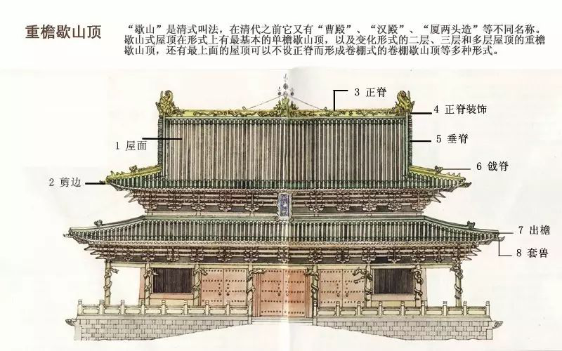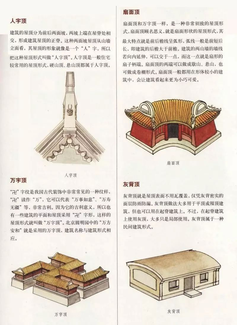 中國古建筑屋頂千變?nèi)f化,瑰麗多姿,不同的屋頂相互組合、穿插,又會形成不同的屋頂形式。