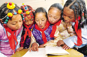 西藏昌都地區(qū)實驗小學的學生們在一起念課文
