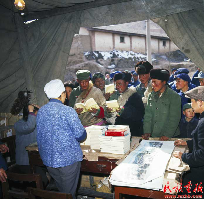 1978年5月,《光明日報(bào)》發(fā)表的特約評論員文章《實(shí)踐是檢驗(yàn)真理的唯一標(biāo)準(zhǔn)》掀起了席卷中國的真理標(biāo)準(zhǔn)大討論。1978年12月18日至22日,黨的十一屆三中全會(huì)在北京舉行。全會(huì)作出了把黨和國家的工作重點(diǎn)轉(zhuǎn)移到經(jīng)濟(jì)建設(shè)上來、實(shí)行改革開放的歷史性決策,實(shí)現(xiàn)了新中國成立以來黨的歷史上具有深遠(yuǎn)意義的偉大轉(zhuǎn)折。同年11月,青海省委宣傳部召開大會(huì),為在“文革”中被打成“大毒草”的藏族史詩《格薩爾》徹底平反。圖為藏族群眾喜購《格薩爾王傳》(中國民族圖片庫資料)