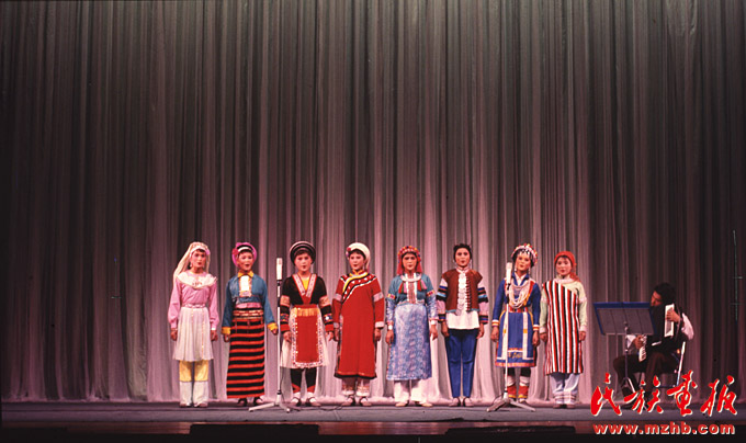 第一屆全國少數(shù)民族文藝會(huì)演于1980年9月20日至10月20日舉行。迄今為止,全國少數(shù)民族文藝會(huì)演已成功舉辦五屆。全國少數(shù)民族文藝會(huì)演是展示黨的民族政策和民族文化建設(shè)偉大成就的舞臺(tái),是展示少數(shù)民族自豪感和自信心的舞臺(tái),是展示各民族文藝工作者卓越才華的舞臺(tái),更是在中華民族大家庭里各民族“手足相親、守望相助”“共同團(tuán)結(jié)奮斗,共同繁榮發(fā)展”的真實(shí)寫照。圖為第一屆全國少數(shù)民族文藝會(huì)演中女聲小組演唱《民族團(tuán)結(jié)開新花》《民族畫報(bào)》1981年第1期