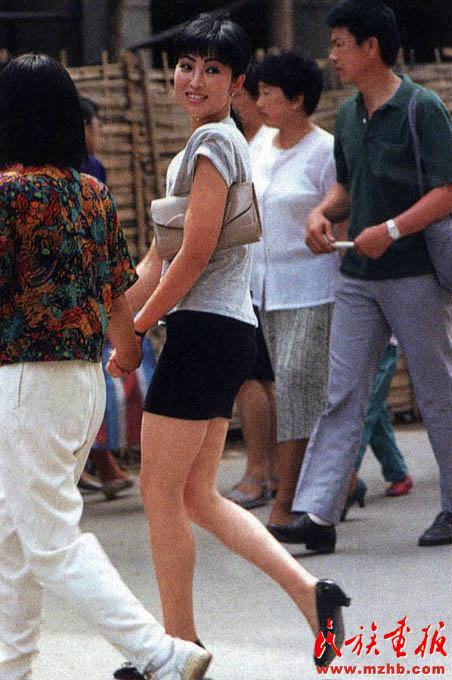1991年,大連流行的超短裙風(fēng)韻獨(dú)具。20世紀(jì)90年代,曾經(jīng)被視為洪水猛獸的超短裙出現(xiàn),中國人對于服裝的追求越來越凸現(xiàn)個(gè)性。《民族畫報(bào)》2008年第12期